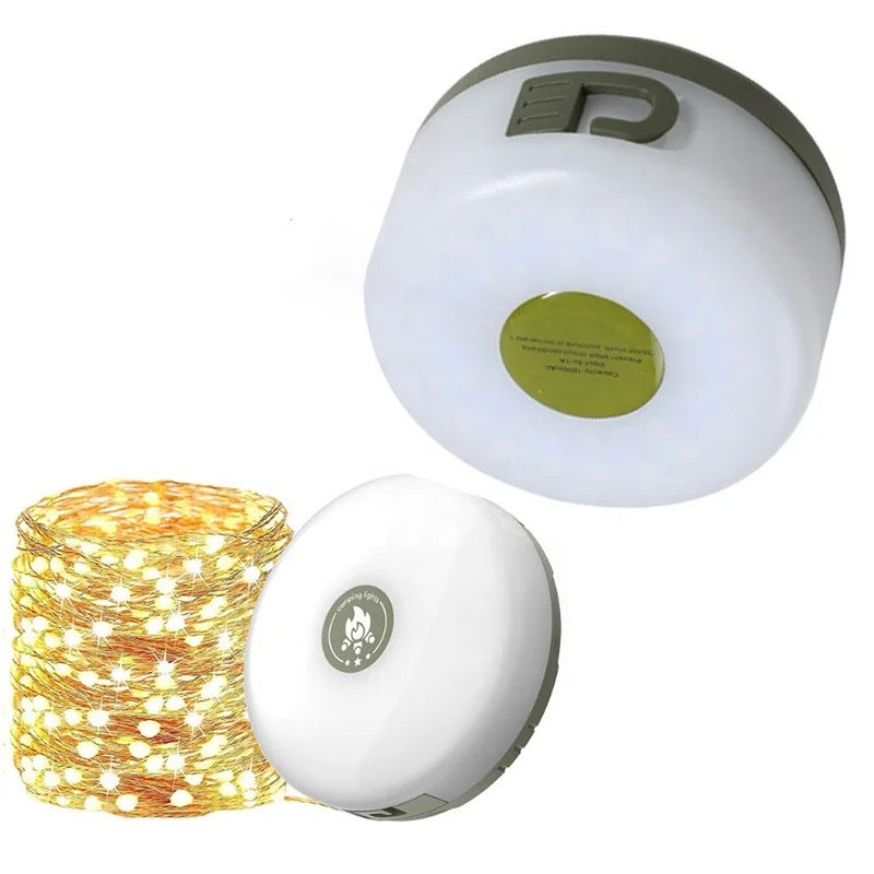 Φωτιστικό σώμα led επαναφορτιζόμενο με λειτουργία σταθερού η και ξετυλίγοντας το με μήκος 10 μέτρα σαν string light .